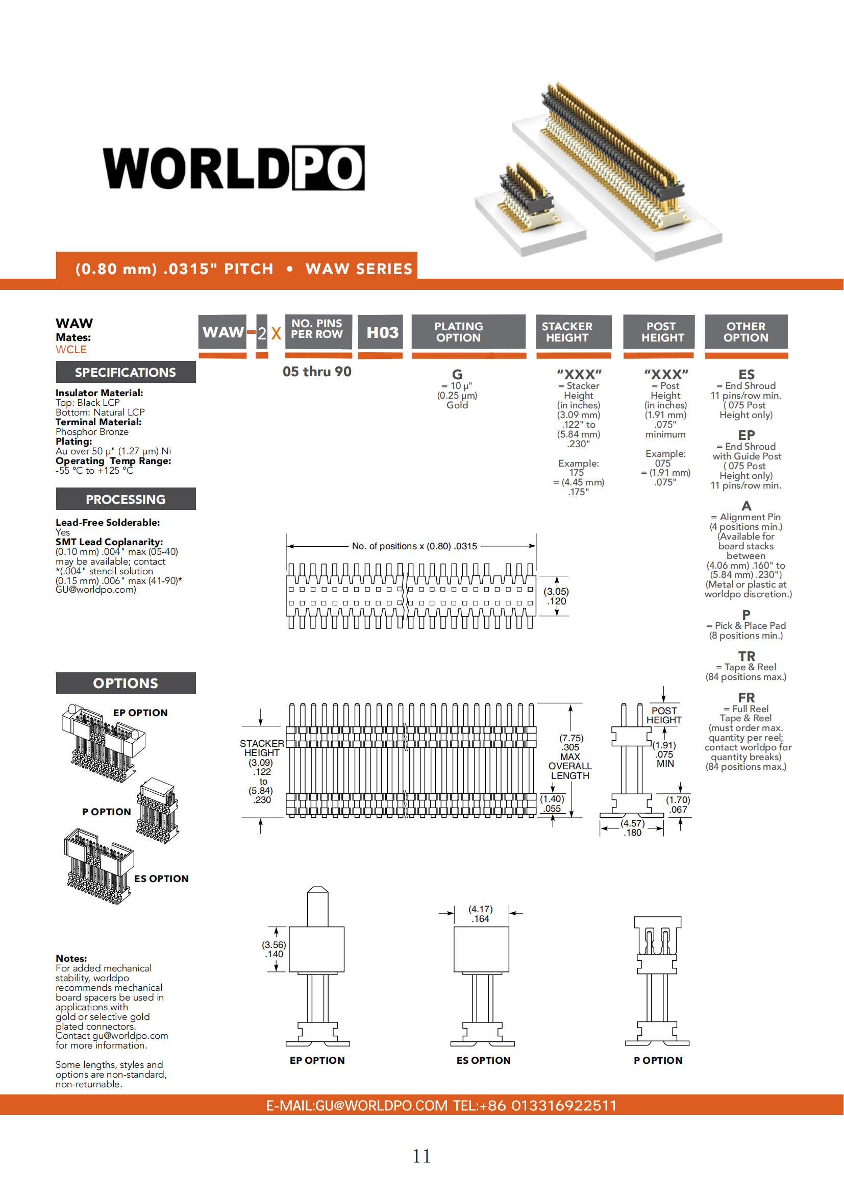 堆叠高度从3.09 mm到5.84 mm不等,提供可选终端隐蔽和导柱
