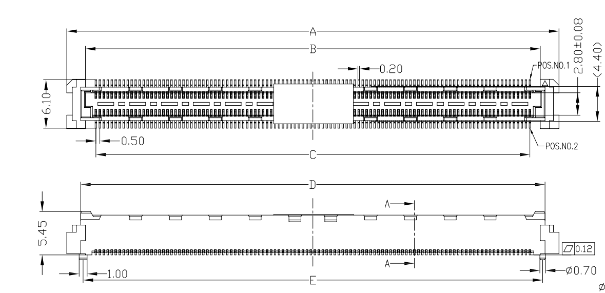 PH0.5mm 间距、H6.00mm合高、POS 80-220pin 、双排镀金、速度可达16G 公头
